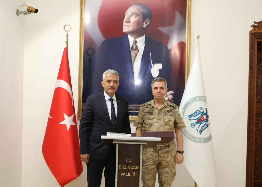 Erzincan İl Jandarma Komutanı Kıdemli Albay Hakan Dedebağı’nın da eşlik ettiği ziyarette, Vali Mehmet Makas, nazik ziyaretlerinden dolayı komutanlarımıza teşekkür etti.